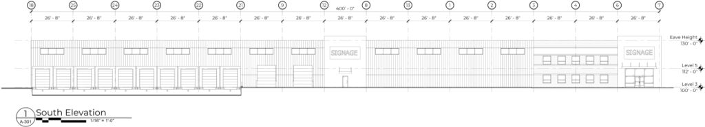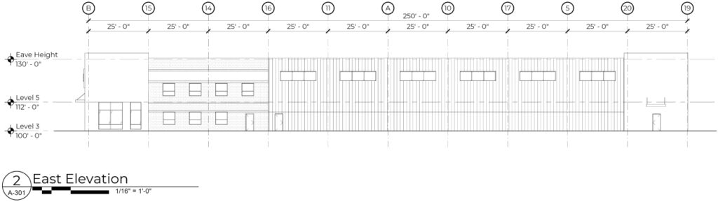 Our 100,000 square-foot pre-engineered precast tilt wall Butler model is our only standard model that combines metal systems with pre-engineered concrete solutions. We designed this model for businesses that require a lot of space for manufacturing, packaging, storage, or transporting. This model contains the following features: