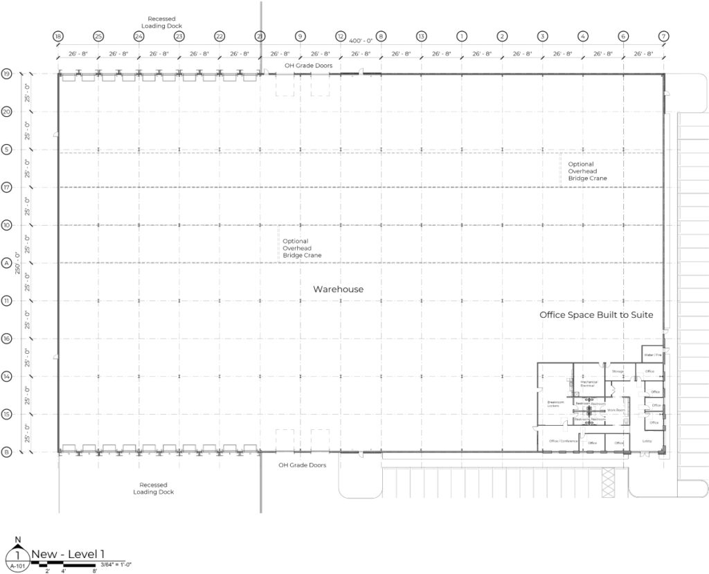 • Recessed loading dock with (20) 10’ x 10’ overhead doors and dock levelers